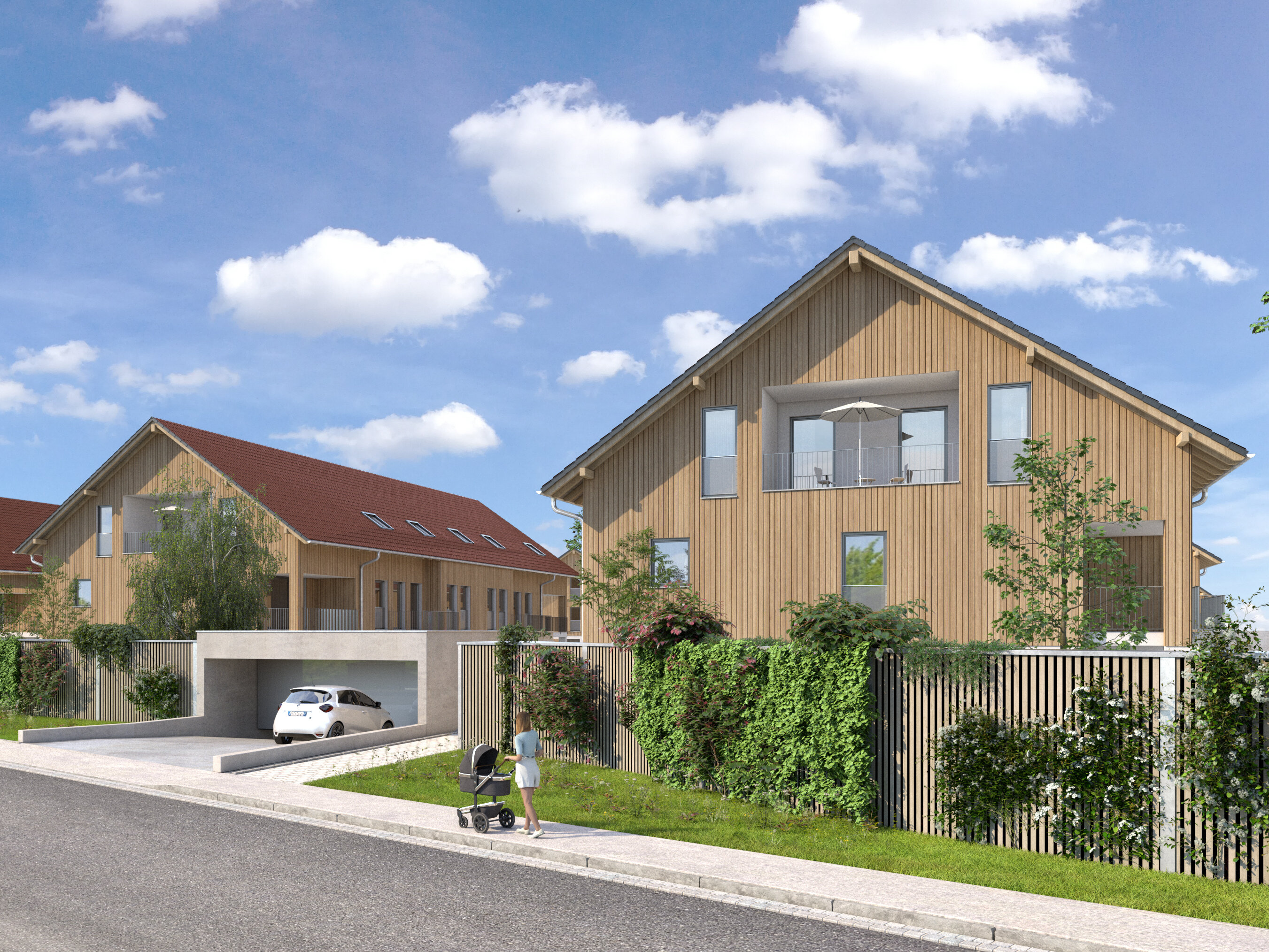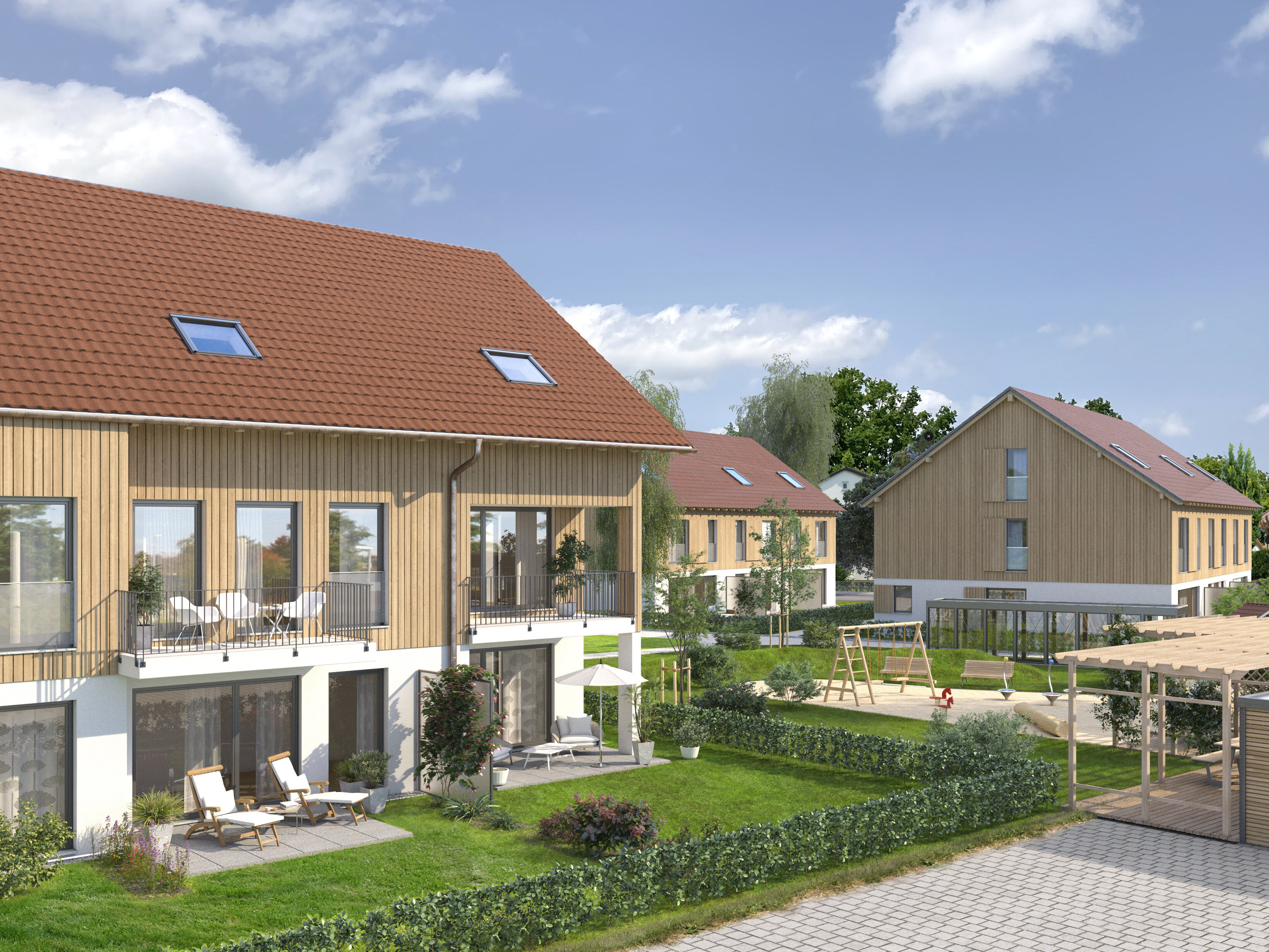 So konnte ein tragfähiger Konsens zwischen kommunalen Zielsetzungen, fachlichen Anforderungen und gesellschaftlichen Interessen entwickelt werden. Im Ergebnis wurde Baurecht für ein ausgewogenes Wohnkonzept geschaffen, bestehend aus vier Mehrfamilienhäusern und elf Reihenhäusern mit einer Gesamtgeschossfläche von rund 6.500 m² und insgesamt 55 Wohneinheiten.